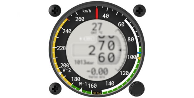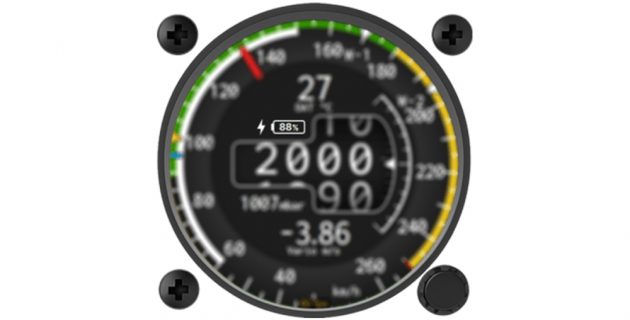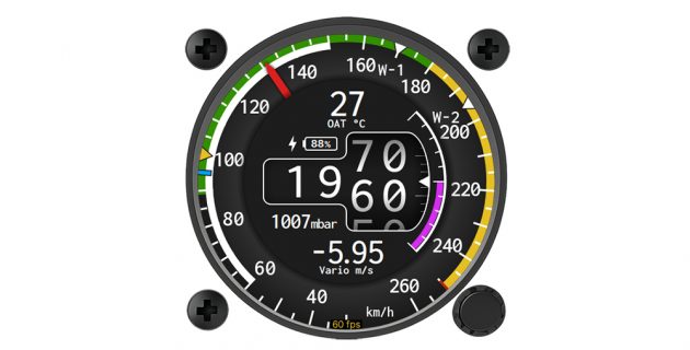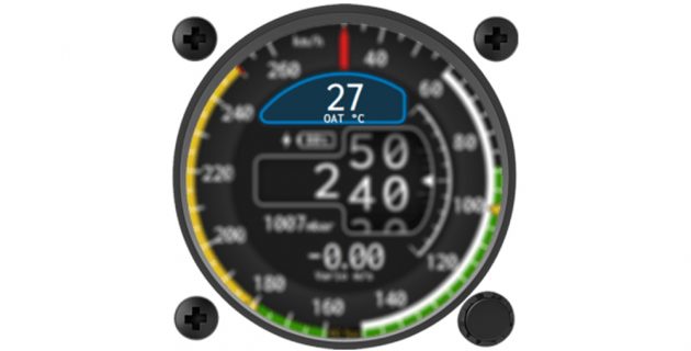 Anzeige von Fluggeschwindigkeit, Höhe, Vertikalgeschwindigkeit und Außentemperatur (OAT) • Digitale Drucksensoren • Das sonnenlichttaugliche 2¼“ bzw. 3,5″ Display (320×240 Pixel) ist unter allen Lichtverhältnissen sehr gut ablesbar • Ein Kombischalter (Drücken/Drehen) dient zum Einstellen aller Parameter und zur Menüauswahl • Backup-Batterie für bis zu 3h • Verschiedene Farben, Skalen und numerische Felder wählbar • Standard 57mm und 80mm Einbaugröße • EASA STC für 494 verschiedene Luftfahrzeugtypen und -modelle.