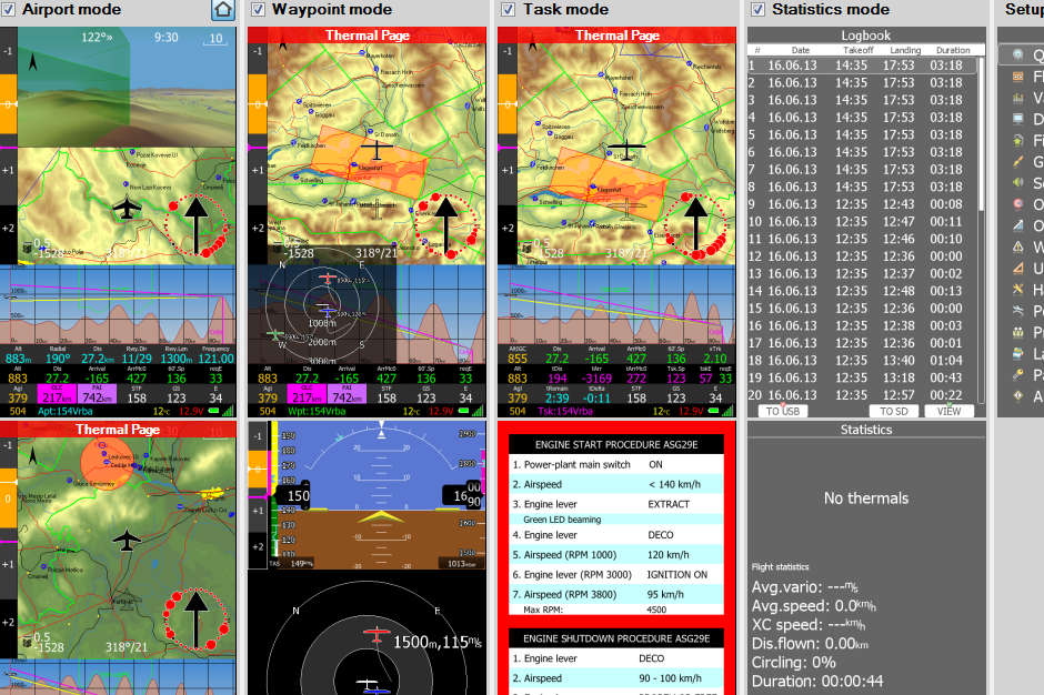 | LX9070, Hochformat mit Checkliste für Arcus M. Aufgabenseite für AAT und Racing Task. | |